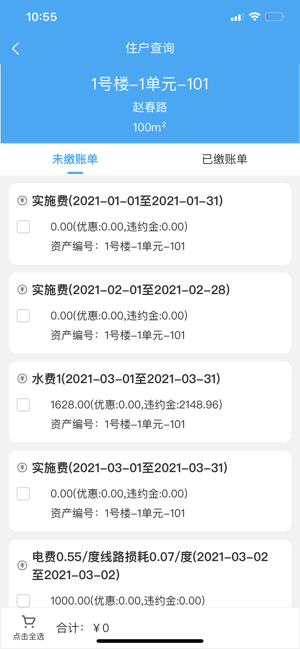 3、物业人员可通过应用查看业主欠费/缴费信息。
