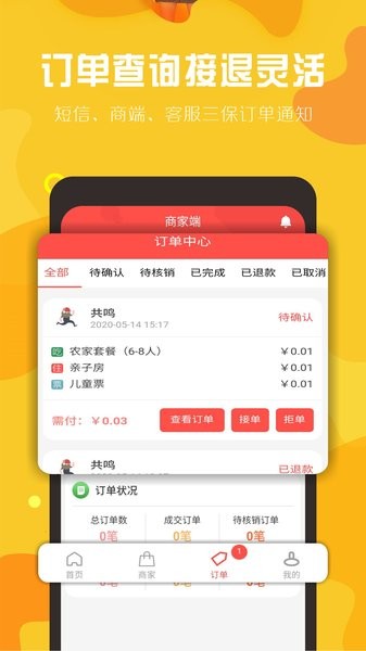 下乡嗨商家端软件适合旅游的商家用户来使用,可以直接在手机上查看最新的游客预约订单,并及时进行处理,可以进行住宿、餐饮、门票等的设置,还可以查看详细的营业状况,欢迎感兴趣的朋友下载体验!
