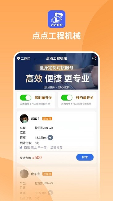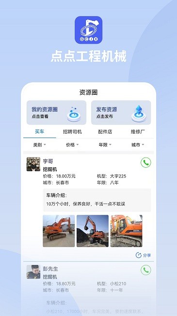 点点工程机械app专门为工程机械行业车主、司机、板车、维保等终端用户提供专业便捷对接服务的平台。
