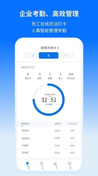 3.用户还可以使用软件对自己手下的员工考勤也可以进行管理高效又精准。