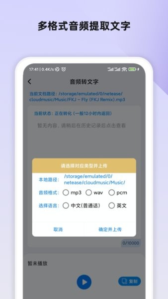 支持录音转文字、音频转文字、语音转文字、听写、语音识别、音频提取器、语音输出、语音导出。