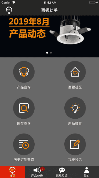 西顿助手软件是非常好用的一款帮助用户们能够在这里快速的查询各种产品信息的手机app,平台上有超多种类的功能能够让用户们随意使用,产品查询、社区、库存、新品、投诉等等等等全都能够找到,各种各样灯具产品详情也能够看到,超级的好用。