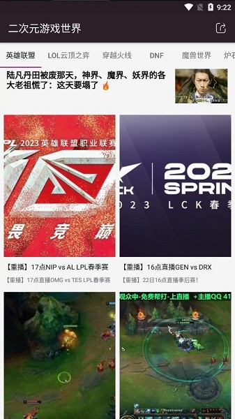 拥有多个主流游戏版块等你加入,玩家能在异次元世界这里快速找到自己的圈子,同时也能第一时间浏览相关的游戏资讯,各种主流游戏当中大佬们战斗过的精彩时光,精彩内容,战斗技巧,新玩法等以重播的形式来给我们展现!