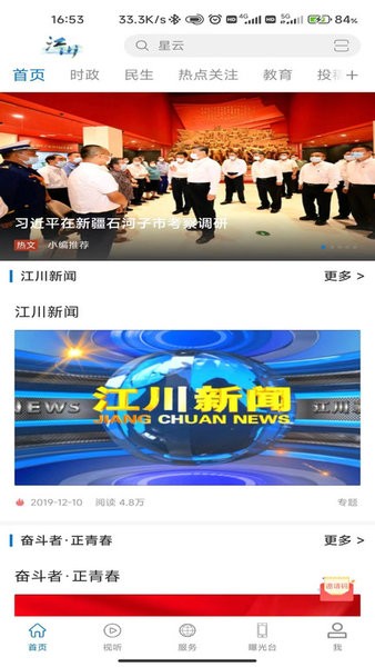 江川星云官方版是拥有许多掌上服务可以享受的新闻软件,软件之中不只是新闻可以随时观看,还有许多的政务服务和生活服务可以随时使用,让用户获得更好用的融媒体平台。