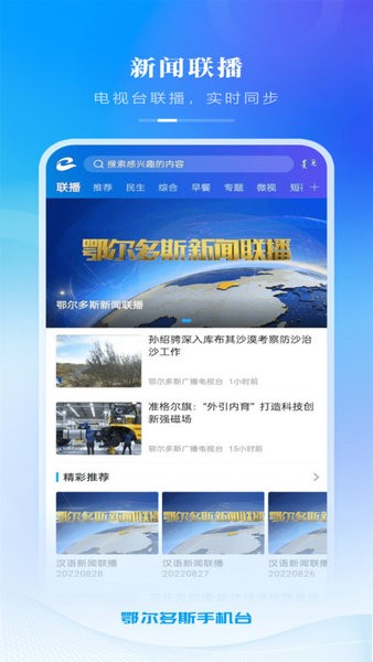 鄂尔多斯手机台最新版是可以随时观看当地新闻联播的新闻资讯软件,为用户同步播放更多的电视节目,许多权威的新闻资讯在这里都可以找到,软件聚焦了当地非常多的热点信息。