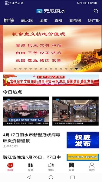 为用户提供信息服务,快速便捷为用户提供生活服务。“无限丽水”APP是丽水市广播电视总台、丽水广播电视集团新媒体中心自主研发、维护、运营的集融媒资讯、生活服务、社交娱乐、直播互动为一体的手机应用,是具有权威媒体属性和拥有新闻资质的信息发布平台。