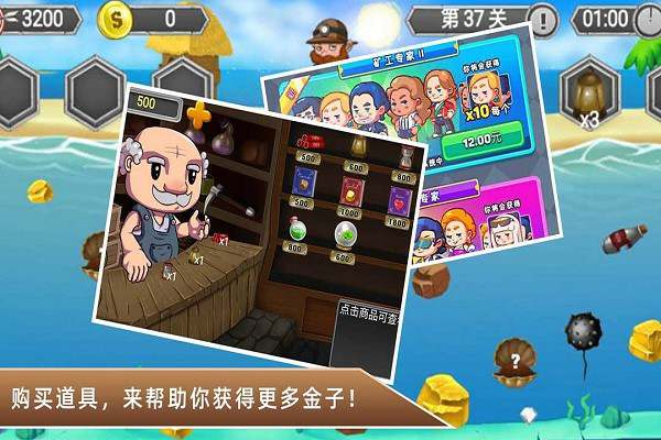 黄金矿工冒险记拥有海量极具挑战性的关卡,难度不一的闯关模式。