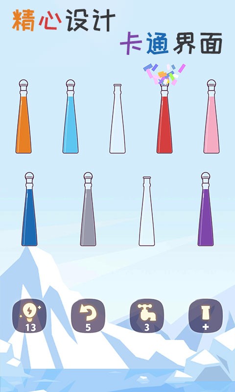 成功的将不同颜色的水放入试管之中,游戏操作比较的简单