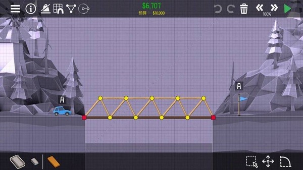 2、修建一座桥梁时,您可以为每一段桥梁选择不同的材料,例如木头、钢筋、钢索或混凝土支柱,可以随意搭配不同的建筑材料(唯一的限制条件是您的预算)。