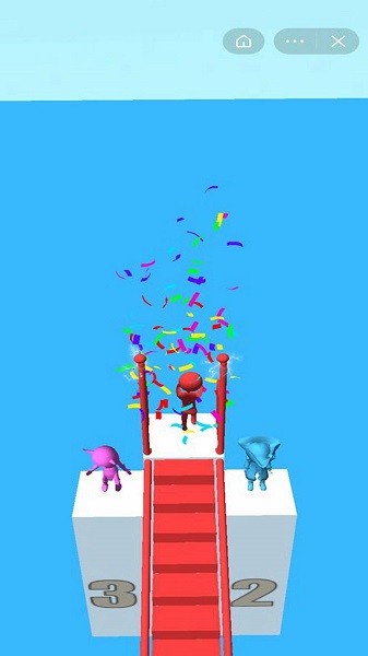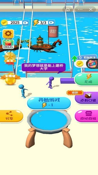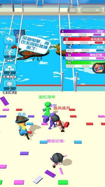2、众多玩家一起来展开竞速对决,收集木板搭建桥梁抄近道前进。