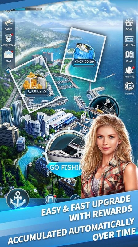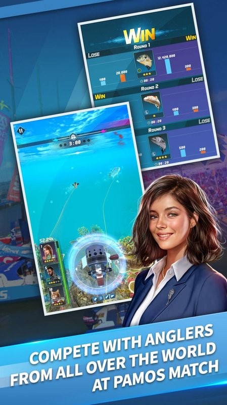 你可以在钓鱼比赛中与来自世界各地的玩家竞争,使用简单的自动控制。