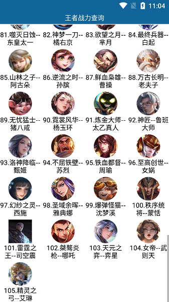 免费好用没有广告的一款王者荣耀战力查询工具;几乎支持游戏中的所有英雄目前共有105位可以查询;可以一键查询的全国王者营销游戏省,市县级战略排行。