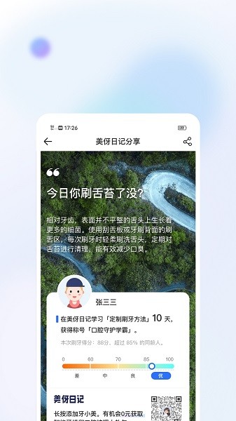 【海报分享】将你的刷牙方案分享给家人、朋友,和他们一起PK刷牙状况。