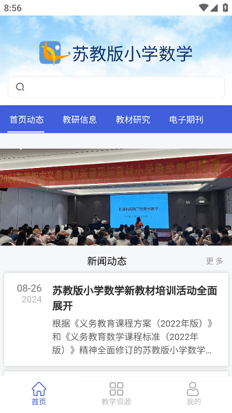 苏教版小学数学最新版是面向小学师生群体提供苏教版教材教学服务的应用软件,内容丰富全面,涵盖教研信息、教材研究、电子期刊等资源,苏教版小学数学电子教材可以查看了解,任你智能筛选,在线学习,助力提升教学效率,提高学生数学成绩!
