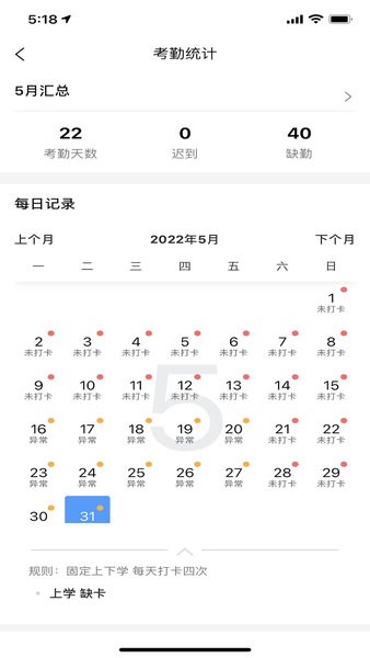 学生可以进行打卡,而且通过软件还可以查看自己的打卡情况。