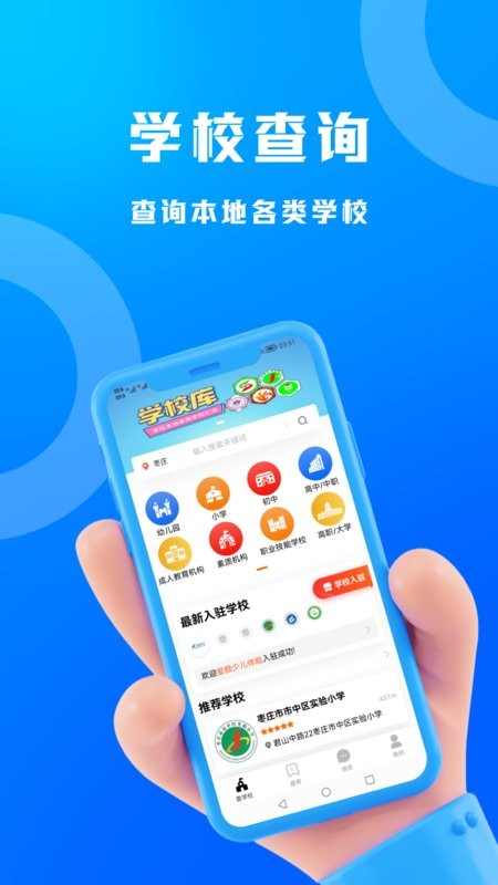 2、学区划片查询、兴趣选择等内容,也为成人、职场和大学生提供兴趣爱好;