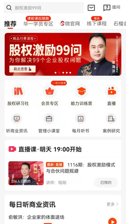 提供观看直播课程内容的功能,可以观看直播在线互动学习,了解各个体系下商业的发展方向;
