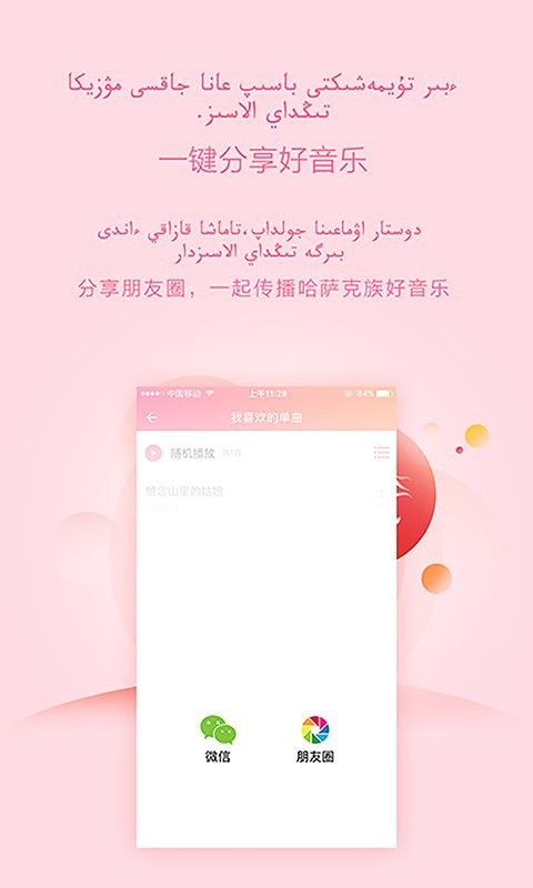 可以将歌单、歌曲分享到朋友圈、随时分享你的音乐心情。