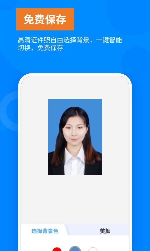 快速换底,白底证件照、红底证件照、蓝底证件照一键生成!节约时间,是繁忙工作学习中的优选!专业的智能高清证件照制作编辑软件,你值得拥有!