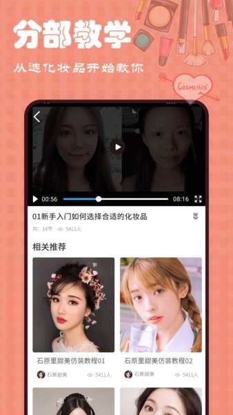 1.应用内提供行业内的美妆大师的视频教程供用户学习。