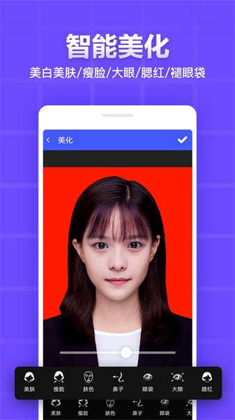 4. 证件照图片美化:自动美颜、美化证件照,图片处理,一键调整亮度、对比度、曝光、饱和度和照片温度等,轻松提示证件照质量
