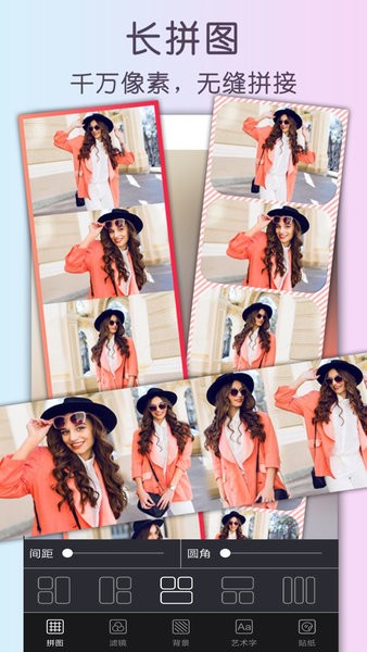 点击图片更换滤镜,百款高质量滤镜,让你的拼图组合更有feel。文艺or胶片,漫画or渲染,单张or all,张张大片任君来。
