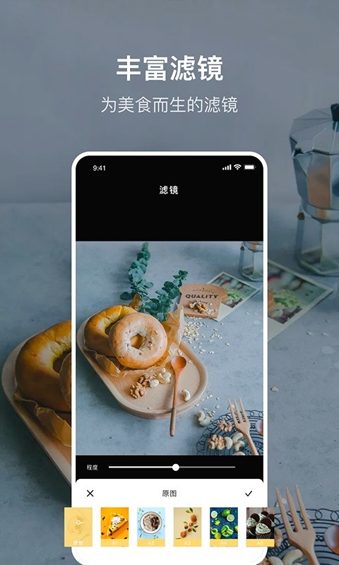 一款专业的手机相机软件,使用方法简单,可以帮助用户选择不同的滤镜,随时简单设置拍照过程,轻松加滤镜或者特效,改变的你的照片风格,各种照片玩法应有尽有,为你创造属于自己的独特美好!还有强大的修图功能,选择你要编辑的照片,可以为它加上滤镜,对比度,海量的贴纸等让你的照片与众不同!
