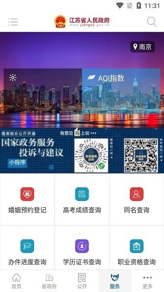 江苏省政府app是江苏省本地官方政府融媒体办公服务平台,聚焦热点要闻、部门、市县、中国中国政府网、政策、数据等内容,实时更新,热门推送,还提供婚姻预约登记、高考成绩查询、办件进度查询、职业资格查询等服务功能,使用方便简单!