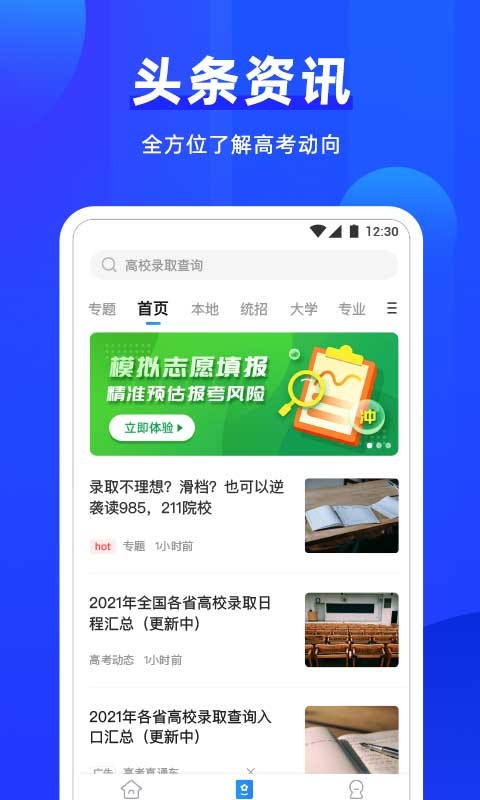高考动态、报考指南、自主招生、综合评价、专项计划、复习经验、学考录取,这里有超全超快的高考头条资讯,助你快速捕捉高考动向,抢占高考制高点!