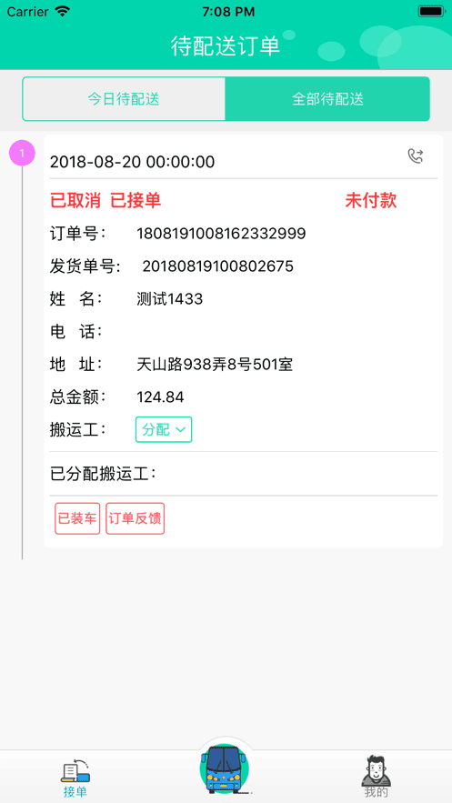 配送员可以立即在线接单,来自公司的最新配送订单可以及时发现;
