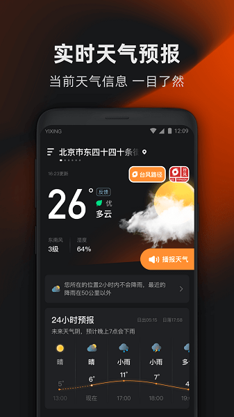 【逐小时天气预报】轻松查阅未来24小时气温趋势变化;