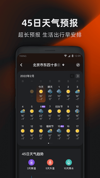 2、在软件中,还贴心的为用户提供了未来四十五日的天气预报的在线查询。