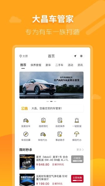 大昌车管家致力打造出色的一站式车主服务,为广大客户提供便捷、优质的服务体验,内容主要包含新车、二手车、维修保养、救援等。