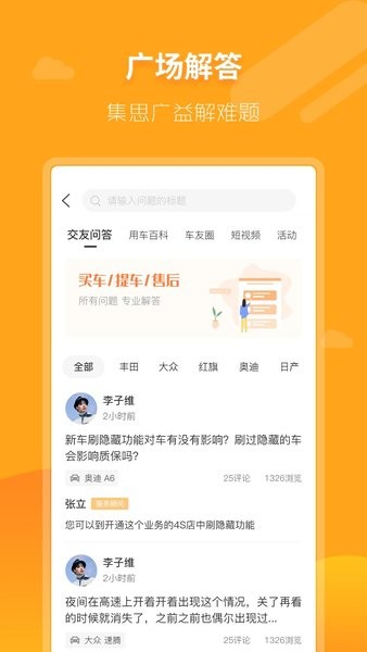 众多车主汇聚问题广场,相互解答问题,专家亲自现身回答;