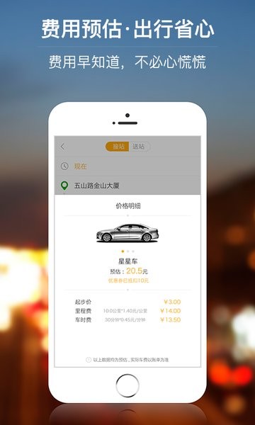 2、预估费用,选择出行的费用就能查看到服务详情;