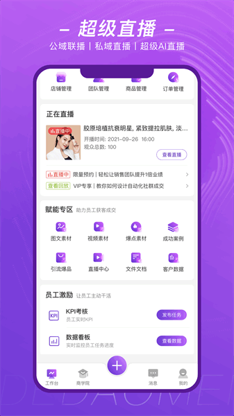 3、以赋能、协作及效率提升作为系统定位,以引流集客为成交的亮点和突破点,多方位操作以促成业绩全面增长;