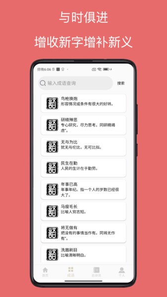 这个字典通App真的很强大!它不仅收录了海量的汉字、成语和诗词,还提供了详细的解释和用法,排版也很清晰,看起来一点也不枯燥。作为一个学习汉语的人,我觉得这款工具特别有用,尤其是里面的成语部分,每个都有拼音、释义、出处和例句,简直是学习神器。