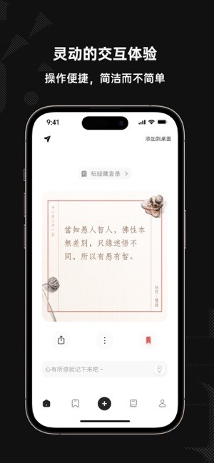 这个叫“字里行间”的应用看起来挺有意思的!它主要是分享各种格言,内容涵盖哲学、文学、科学和艺术等领域。每天都会推送一条智慧格言,感觉像是生活中的小贴士,能给人启发。界面设计得很简洁,操作起来也方便,特别是还能自定义桌面组件,让阅读更便捷。