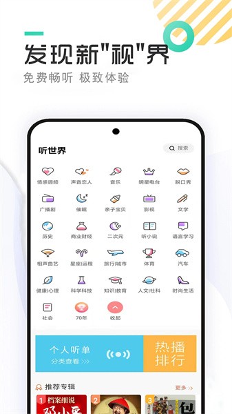 全懒人的听书方式,爱听什么就多听什么,全酷的听觉享受,让你身临其境,探索有声世界的喜马拉雅高峰。