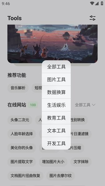 卡的工具箱就是原卡音app和途星app整合后推出的,之前两个软件的功能全部整合到了这个里面。内置了100多个工具,包括开发工具、图片工具、生活娱乐、文本工具等多种类型,可以满足不同使用环境的需求。