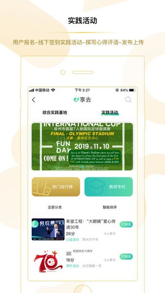 4、实时更新的超多实践活动可以随时查看,还可以信息筛选查找;