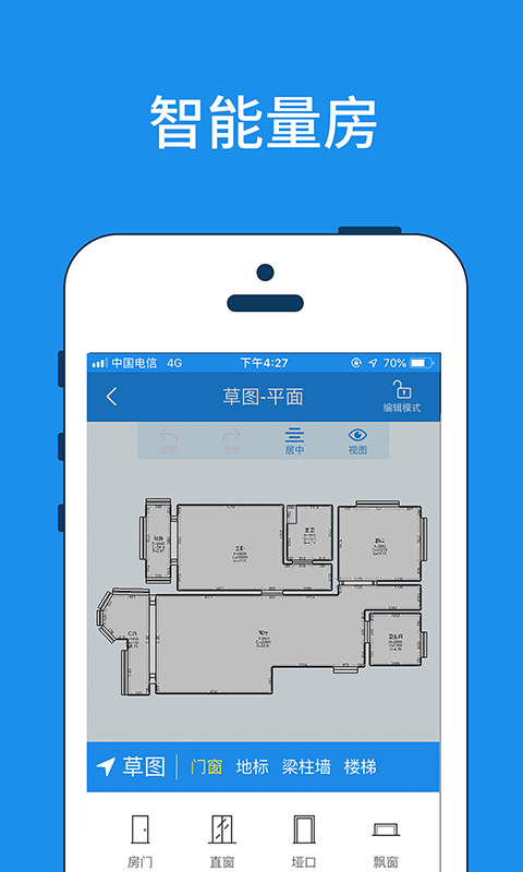 2、点击页面下方选择要测量的图形,可选择门窗、梁柱墙、地标、楼梯。
