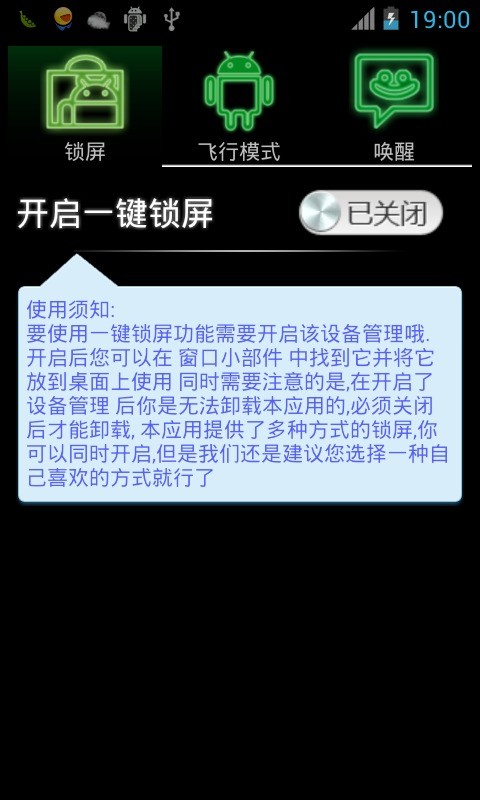 开启一键锁屏。