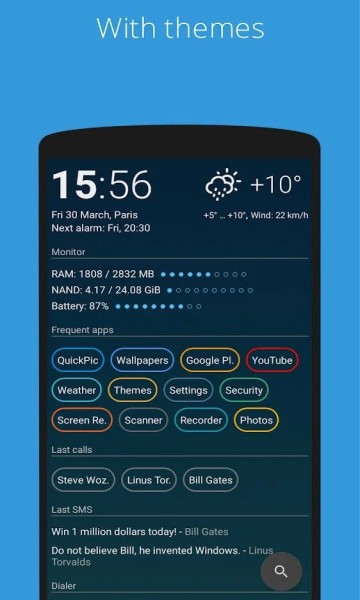 AIO Launcher不是普通的桌面。它没有彩色图标,许多动画效果和各种主题。相反,AIO Launcher使用屏幕向您显示最重要的信息。