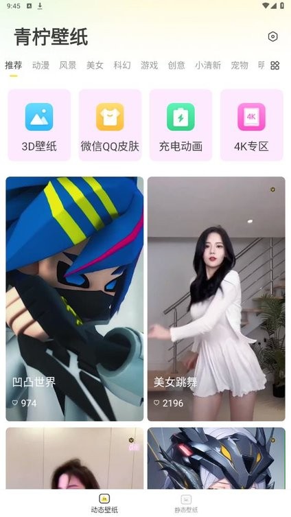 青柠壁纸app为用户带来了各种壁纸类型,强大的搜索功能,不管是动态壁纸,还是静态壁纸都能免费使用,快来下载体验吧!