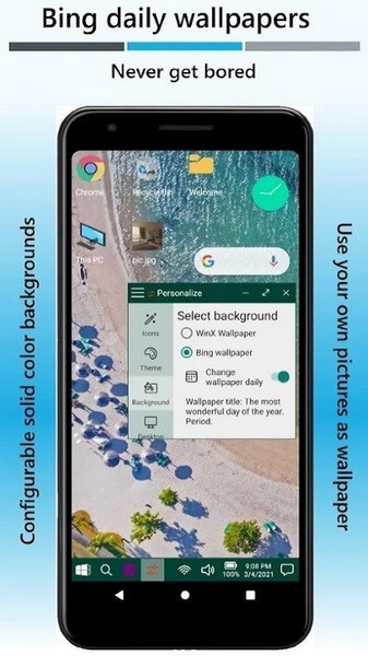 -- 自定义您的手机,打造独特外观和感觉,带来全新惊喜,开启Windows风桌面效果