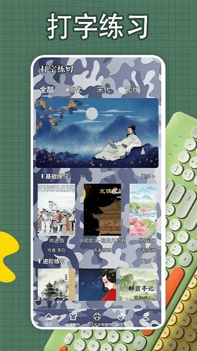 3、皮肤自定义,一键设置管理键盘皮肤,随时进行打字练习,给人不一样的视觉体验