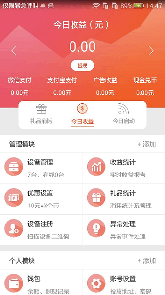设备注册、优惠设置、会员管理、远程上分等
