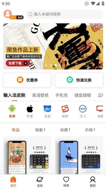 云町物语app是一款提供主题皮肤壁纸的应用软件,带来输入法皮肤、高清壁纸、手机壳、键盘键帽等资源内容,精选推荐,试试上新,随你搜索选择,在线下载体验,还提供优惠弧⒅С挚焖俣一唬更多活动、种草等你发现,使用方便!