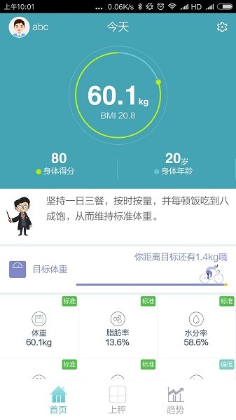 4、能够在这里了解到例如体重、脂肪率、安眠粉、肌肉量等等数据内容,而且记录的数据是非常详细和准确的;